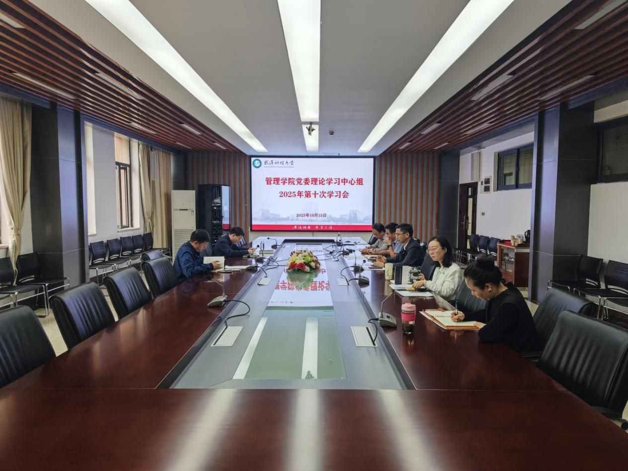 (通讯员:蔡钰楠)10月15日上午,学院在教八楼80315会议室举行2025年党委理论学习中心组第十次学习。党委书记伍学云主持学习会,全体党委委员参加学习。
