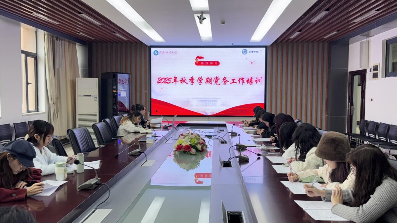 (通讯员:吴雅雯)10月30日中午,我们学生党总支于80315会议室开展2025年秋季学期党务工作培训会,会议由党务秘书王云鹤主持,红色青春党员服务站成员和全体党支部书记参加。