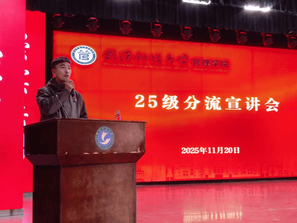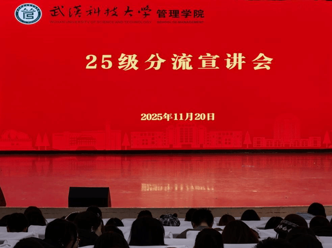 (通讯员:宋徐金鑫)11月20日晚,我们于沁湖礼堂举办了2025级本科生专业分流宣讲大会。我们副院长黎精明、教务秘书熊燕、2024级辅导员周琰出席本次会议,我们全体2025级本科生共同参与。2025级本科生辅导员葛红涛主持会议。
