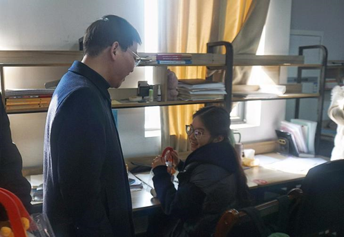 (通讯员:张天浩)12月8日上午,我们开展考研送温暖慰问活动。我们党委书记伍学云,院长刘海兵,党委副书记赵磊,副院长黎精明、张洪、杜瑞瑞,院长助理熊华平及毕业年级辅导员窦薇前往教80509自习室慰问正在紧张备战考研的学子们,为他们送上学院的暖心关怀与真挚祝福,并与考研学子们亲切交流,现场气氛温馨而鼓舞人心。