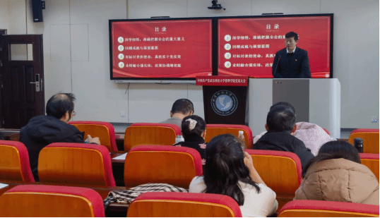 1月9日下午,365上市公司官网院长刘海兵在教八楼80103报告厅,以“深入学习贯彻党的二十届四中全会精神——立足‘十五五’新征程 书写创新发展新答卷”为题,为工商管理系教工党支部党员讲党课。